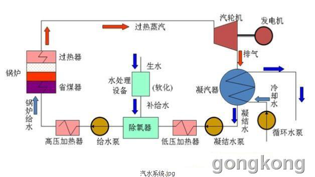 汽水系統(tǒng)(熱力系統(tǒng))產(chǎn)生蒸汽推動汽輪機做功,把熱能轉(zhuǎn)換為機械能。是火電廠動力部分的核心。